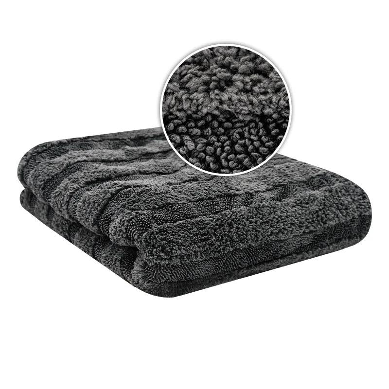 With a size of 50 x 80 cm and a weight of 1100 GSM, you can easily dry up to 3 vehicles (golf class) with just one cloth without having to wring it out. Thanks to the Twisted Pile fiber (Black Hole), this cloth absorbs enormous amounts of water and dries any vehicle quickly and completely gently on surfaces.