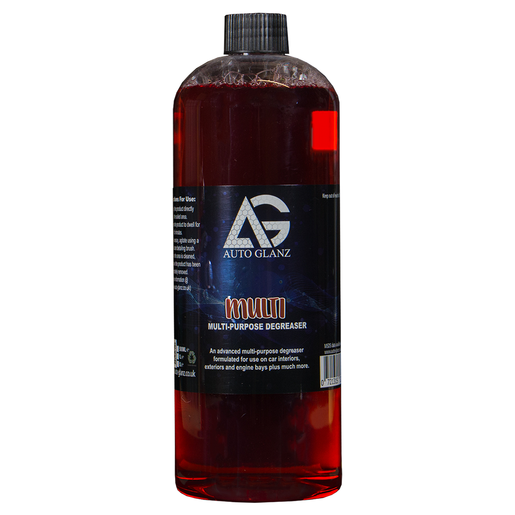 AutoGlanz Multi is an advanced & concentrated alkaline based multi purpose degreaser. Free from harsh chemicals & phosphates and is ideal for use on exterior tasks such as trim cleaning, rubber cleaning, engine bay, wheels, tyres and even as a stand alone pre wash.