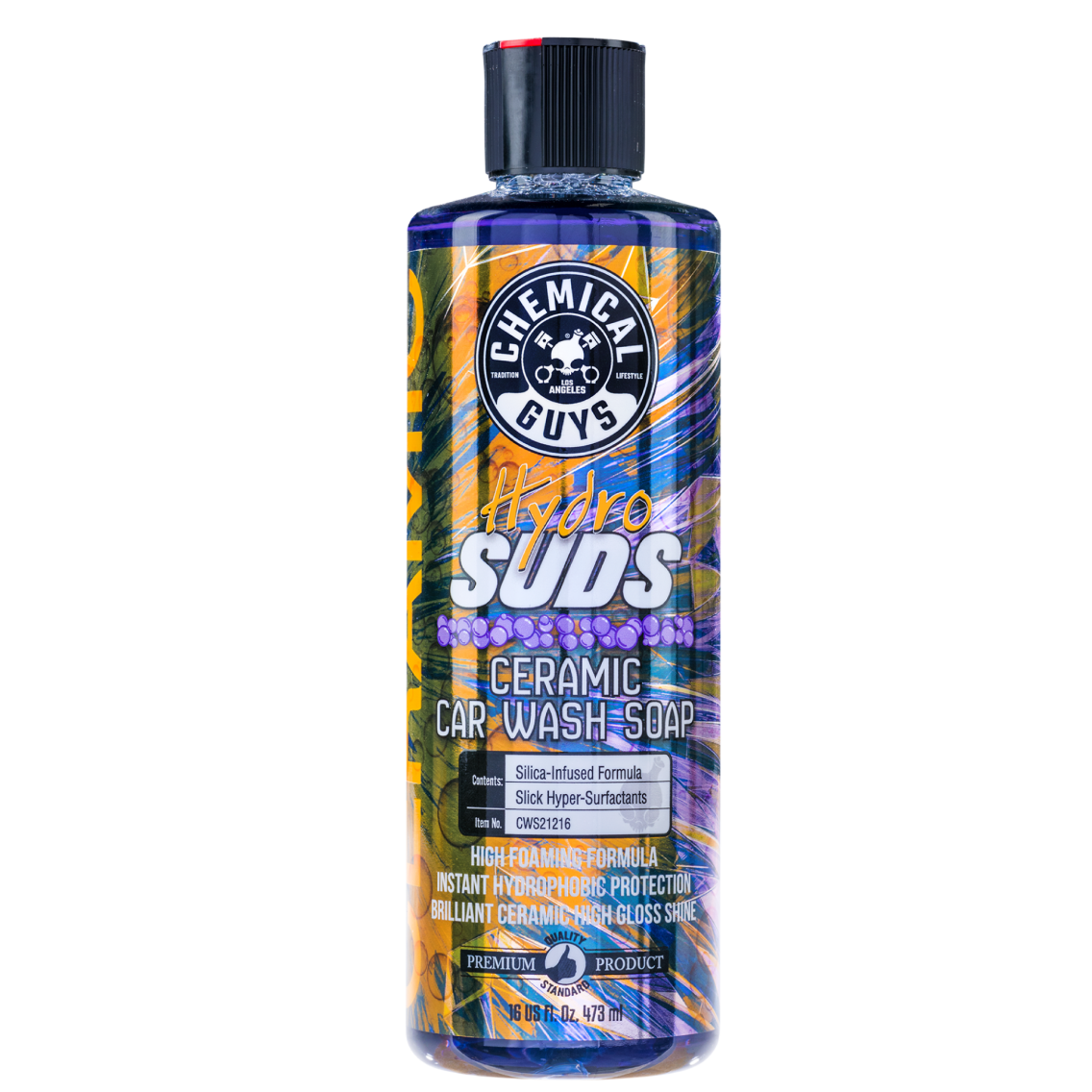 HydroSuds Ceramic Car Wash Soap combines a hyper-foaming pH neutral soap with the high-gloss shielding properties of SiO2 to deliver a hydrophobic wash that delivers a brilliant jaw dropping shine.