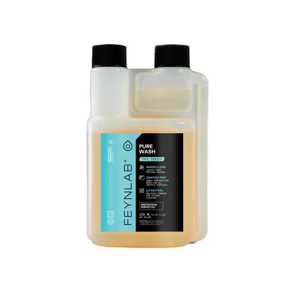 FEYNLAB® developed PURE WASH to compliment nano technology based coatings and sealants by resetting their hydrophobic properties with each use. PURE WASH is deep cleaning maintenance shampoo designed to rinse completely free, leaving nothing behind but a clean surface. Regular use of Pure Wash will maintain optimal sheeting and self cleaning properties of all paint coatings, sealants, and surfaces. Pure Wash is the perfect pre-coating preparation cleanser, since it deep cleans surfaces, leaving nothing behind to interfere with bonding.